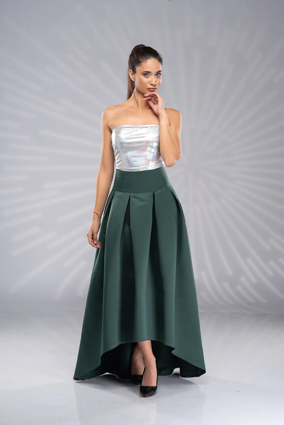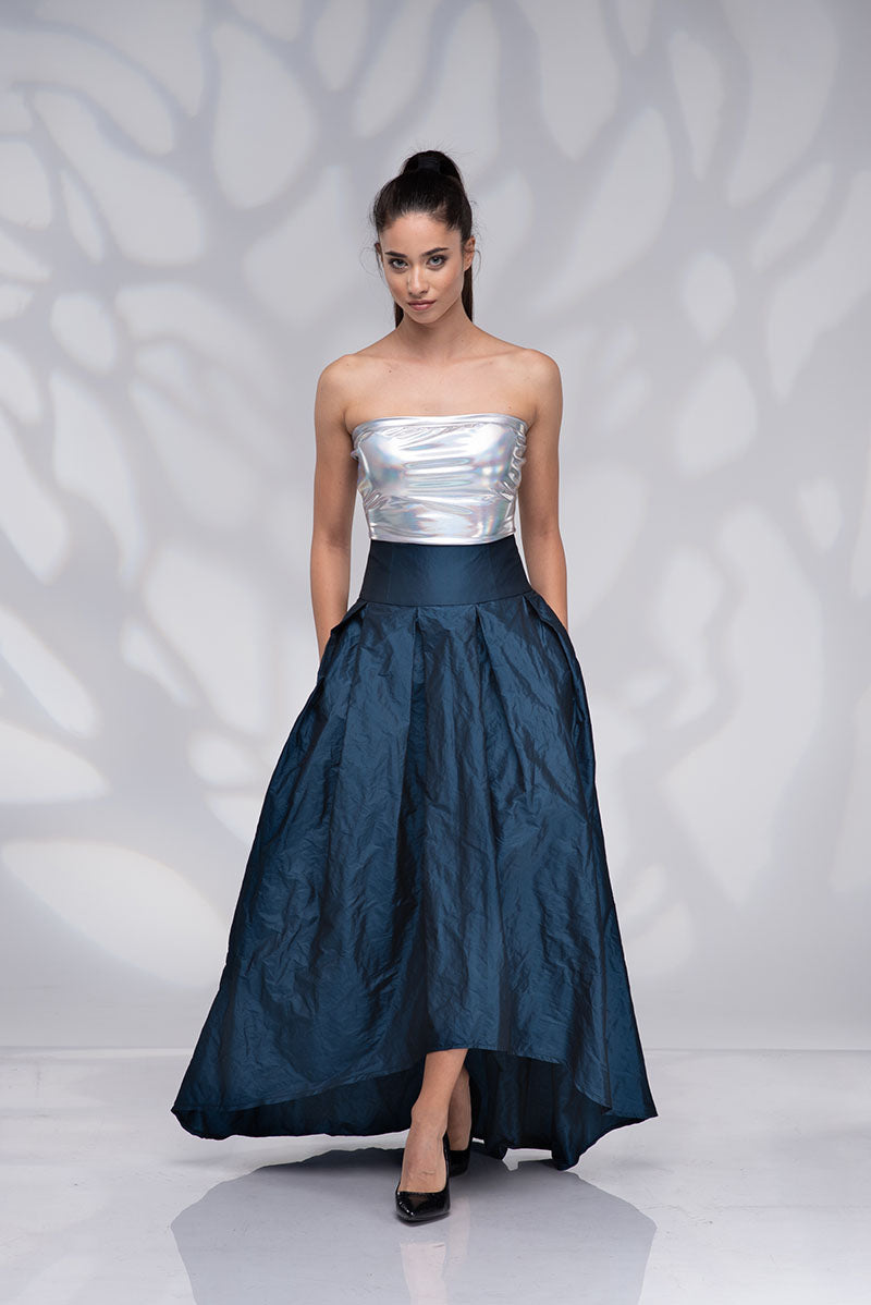"I needed the clothes in a shorter time than advertised and Danelly’s were extremely helpful and made this happen. Despite the time constraints they still took my measurements and ensured the skirt and top fit perfectly. The skirt is glamorous while also being rather funky, in my opinion."