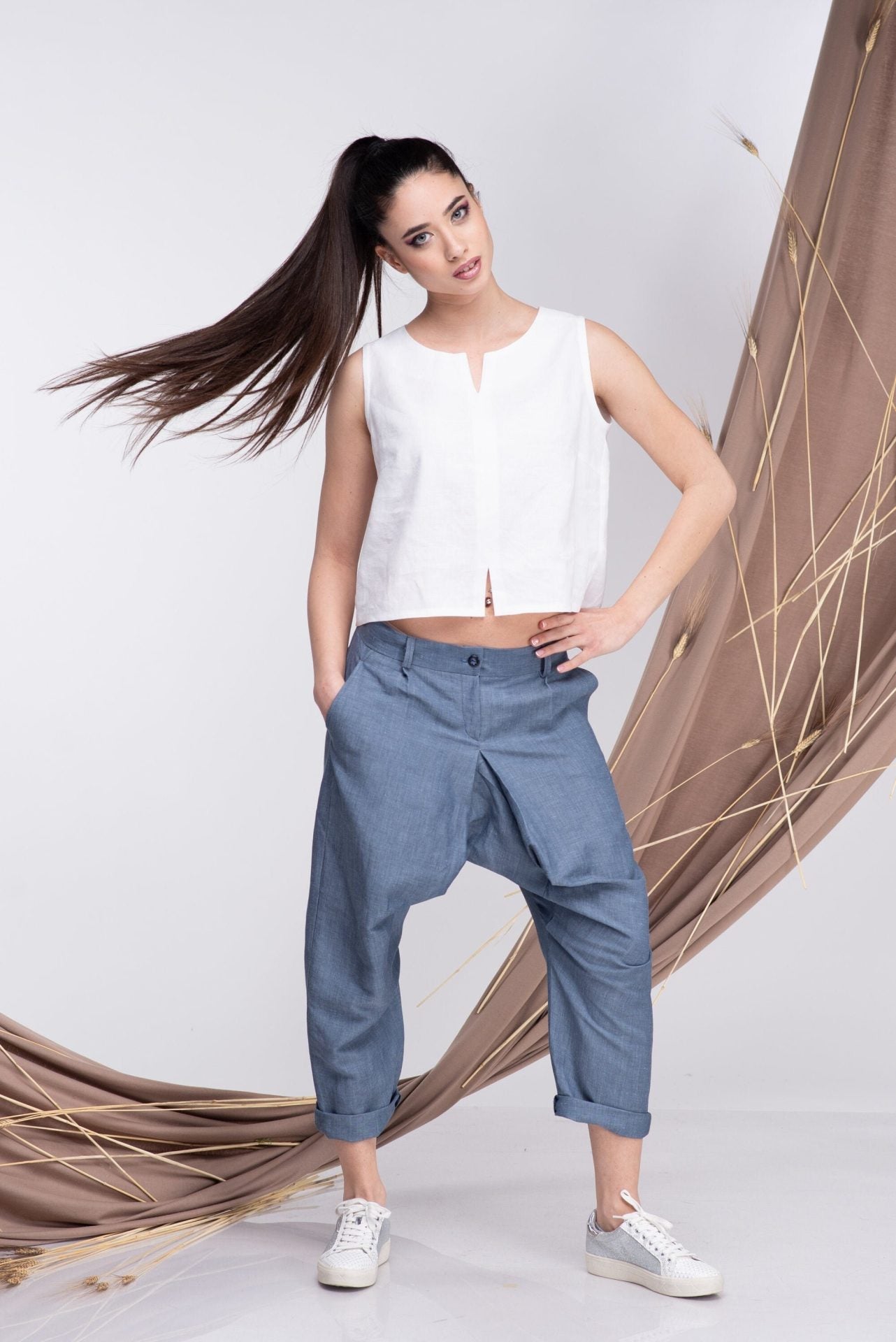 Linen Victorian Loose Blouse with Balloon Sleeves