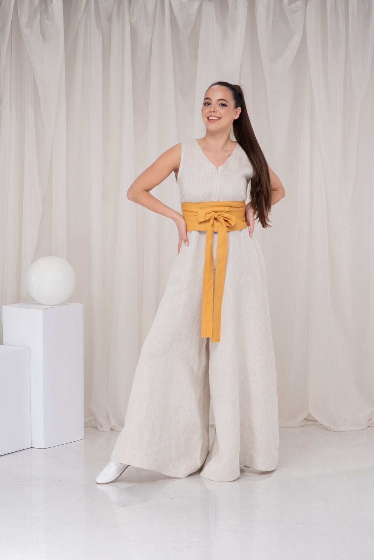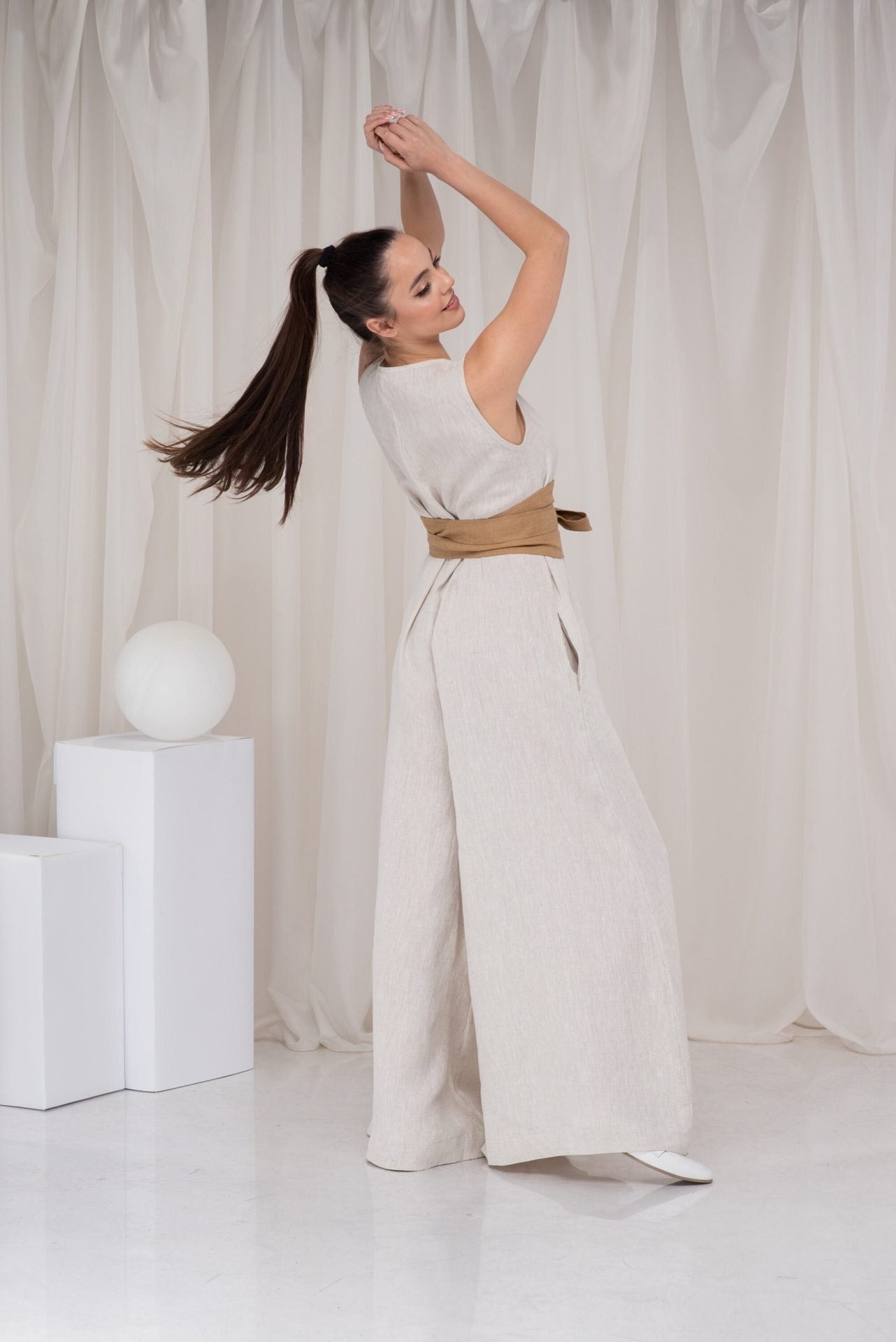 Summer Linen Oversized Elegant Wide Leg JumpsuitSummer Linen Oversized Elegant Wide Leg Jumpsuit