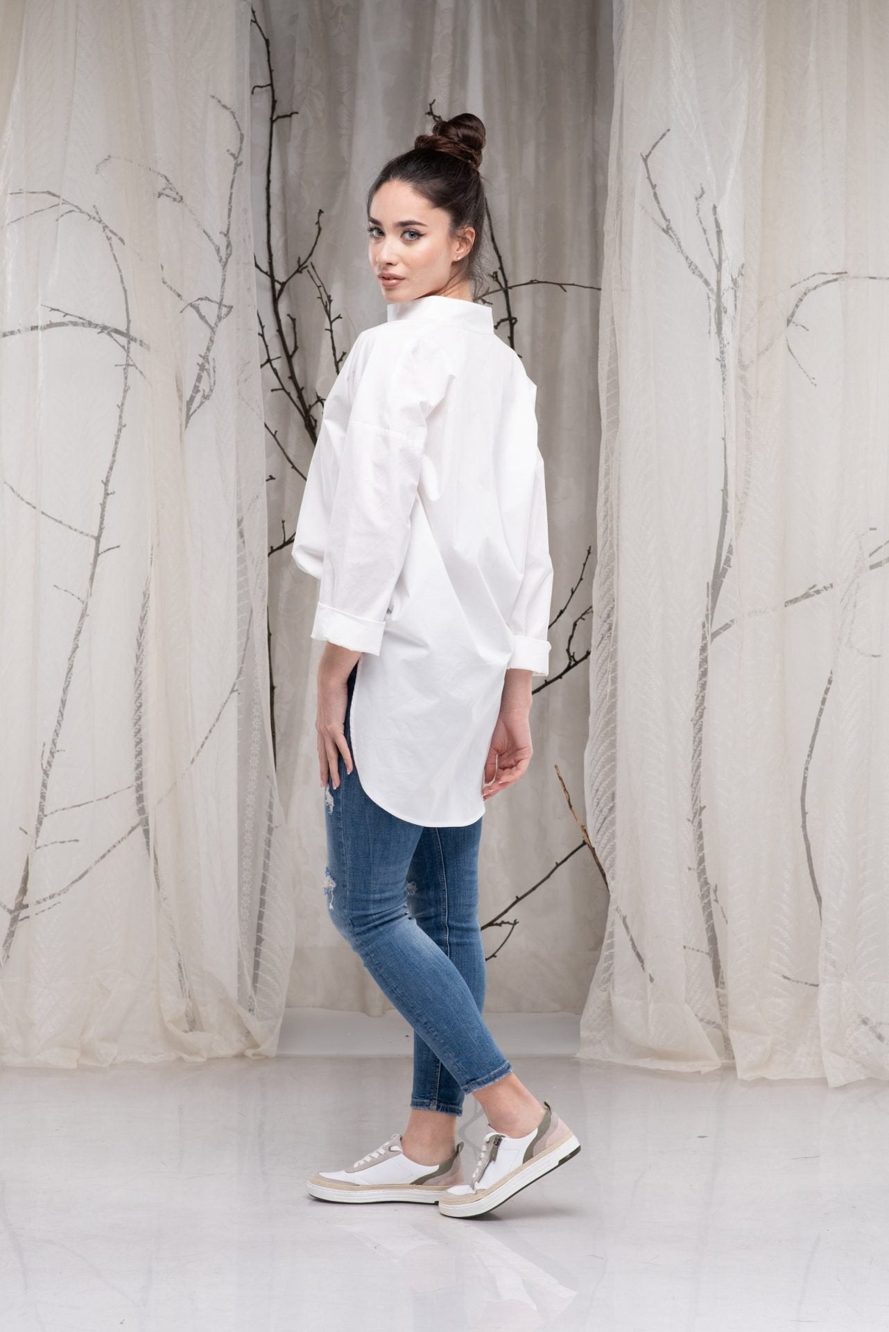 White Cotton Minimalist Asymmetrical Loose Tunic ShirtWhite Cotton Minimalist Asymmetrical Loose Tunic Shirt