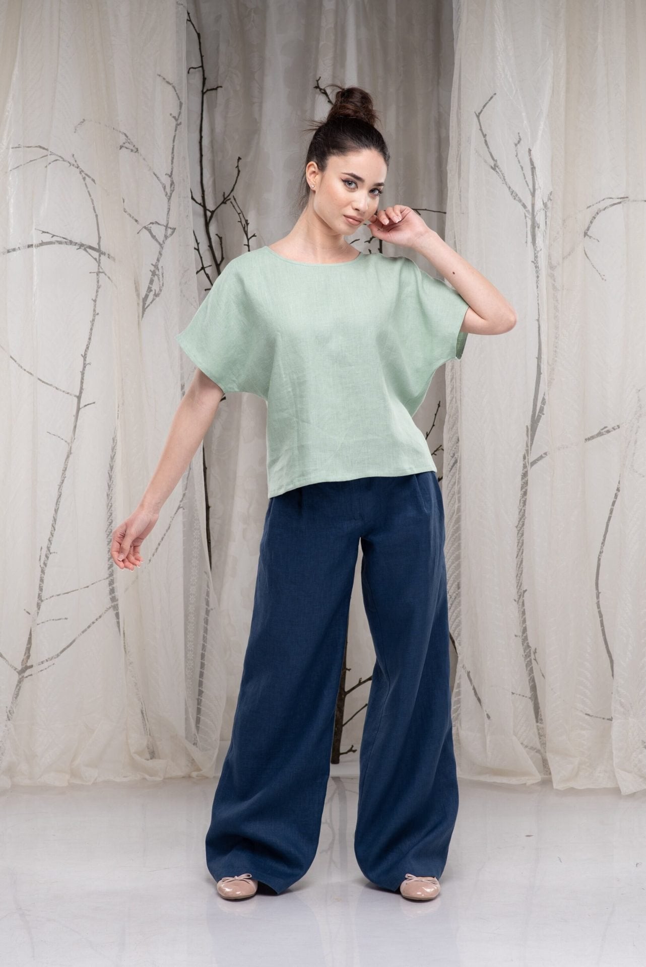 Linen Plus Size Short Sleeve A-line Summer Blouse