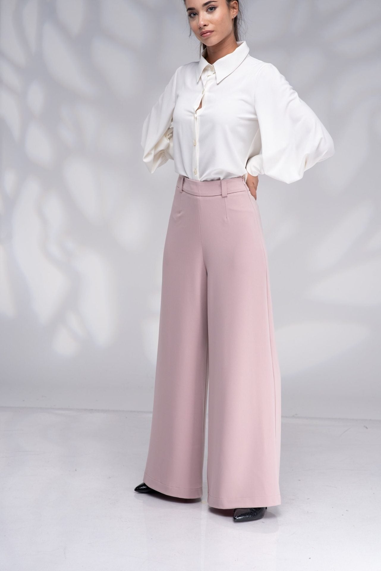 Wide Leg Palazzo High Waisted Flared Trousers with Side Zipper
