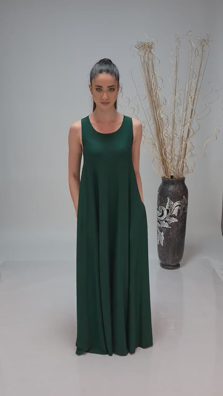 Green Maxi Summer Plus Size Kaftan Boho Dress with Long Sleeveless
