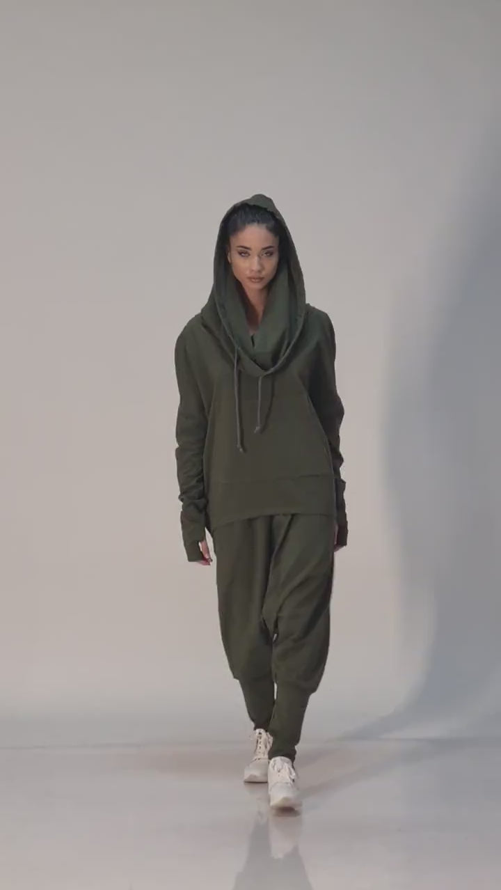 Jogging Sport Tracksuit Cowl Neck Hoodie and Harem Pants