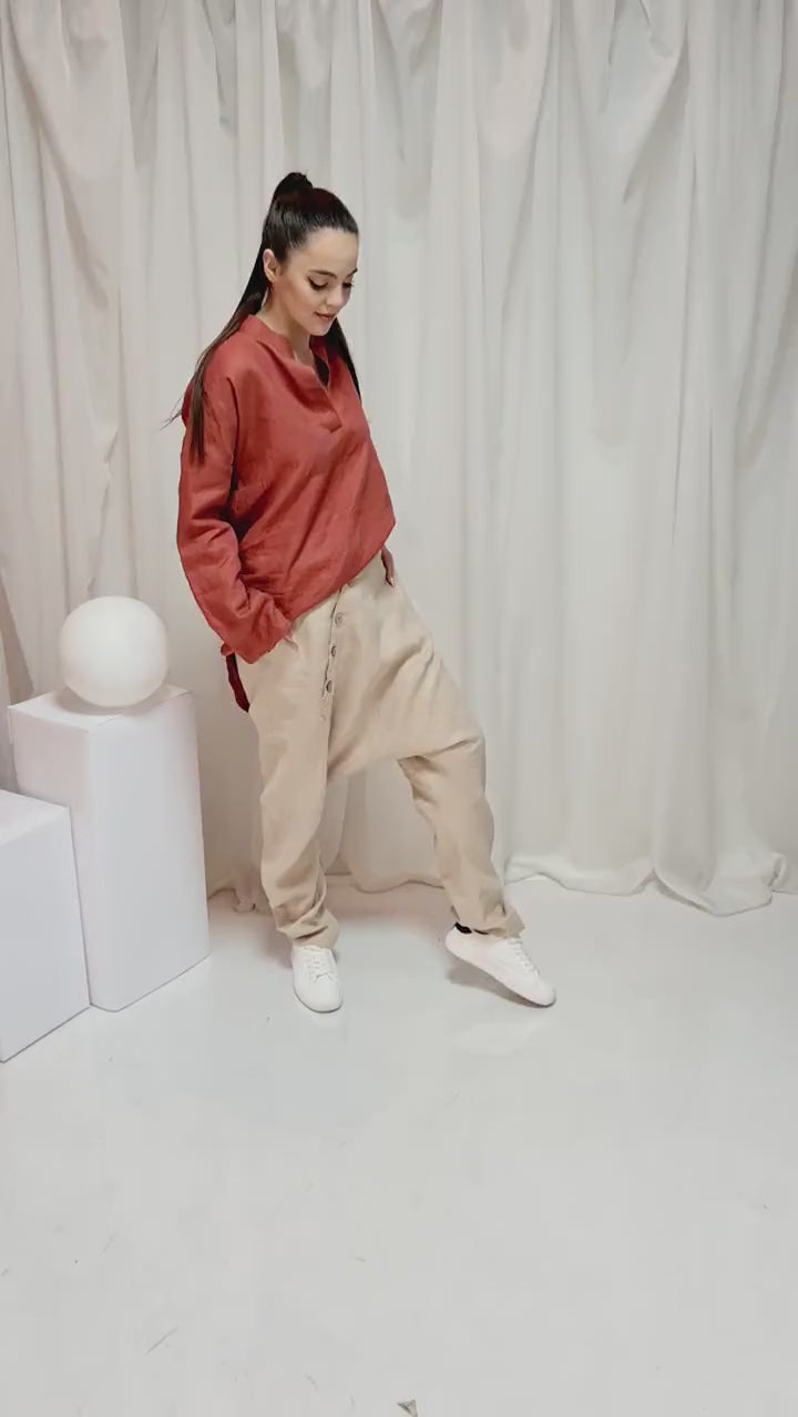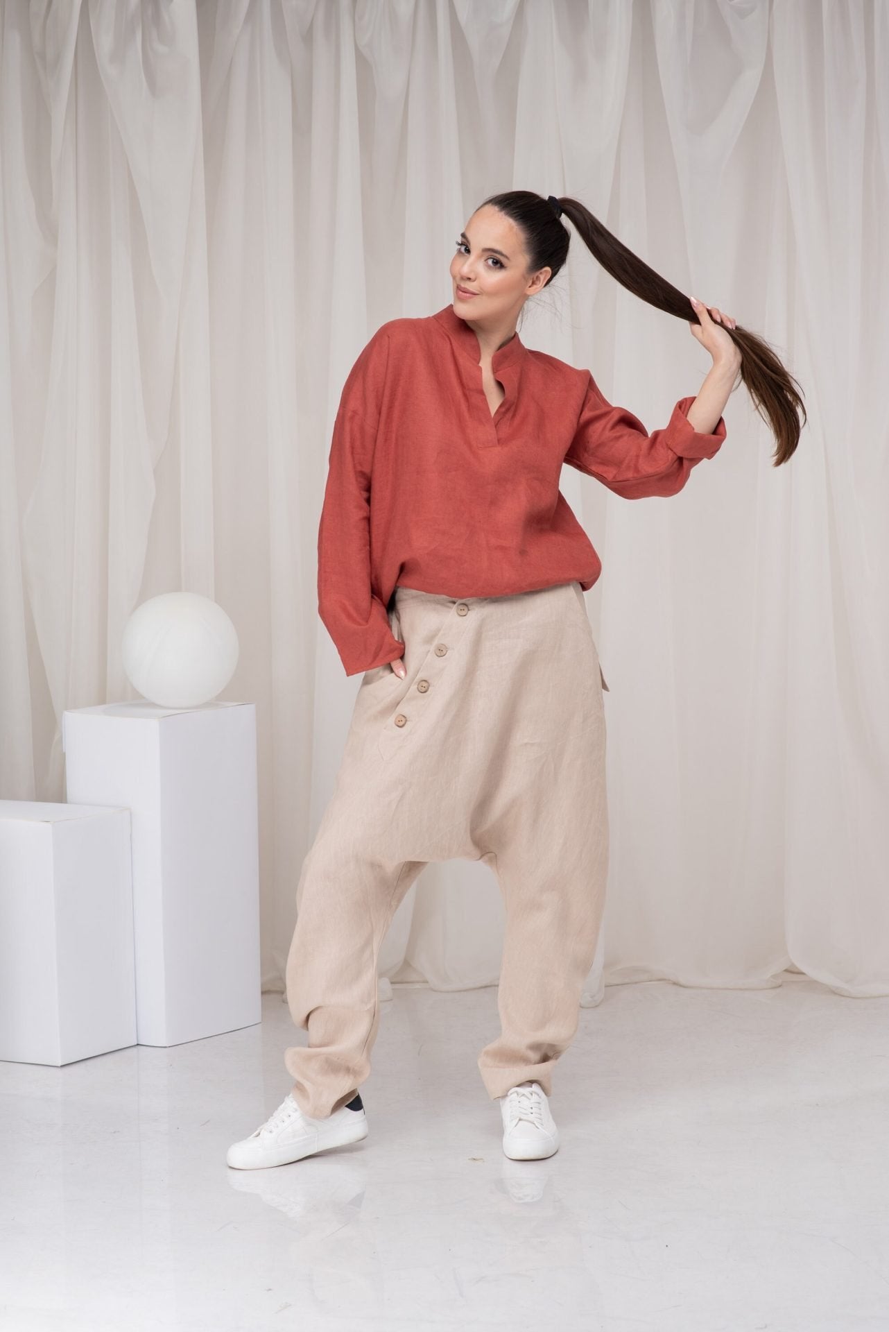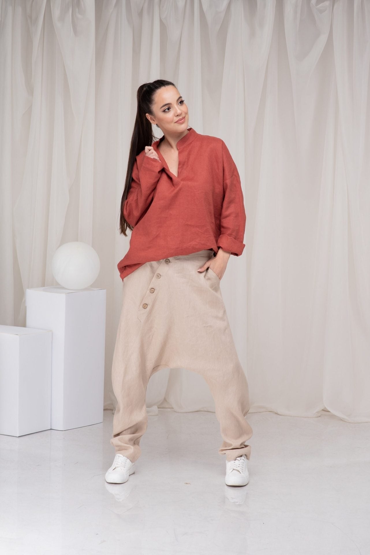 Linen Harem Baggy Unisex Summer Casual Trousers