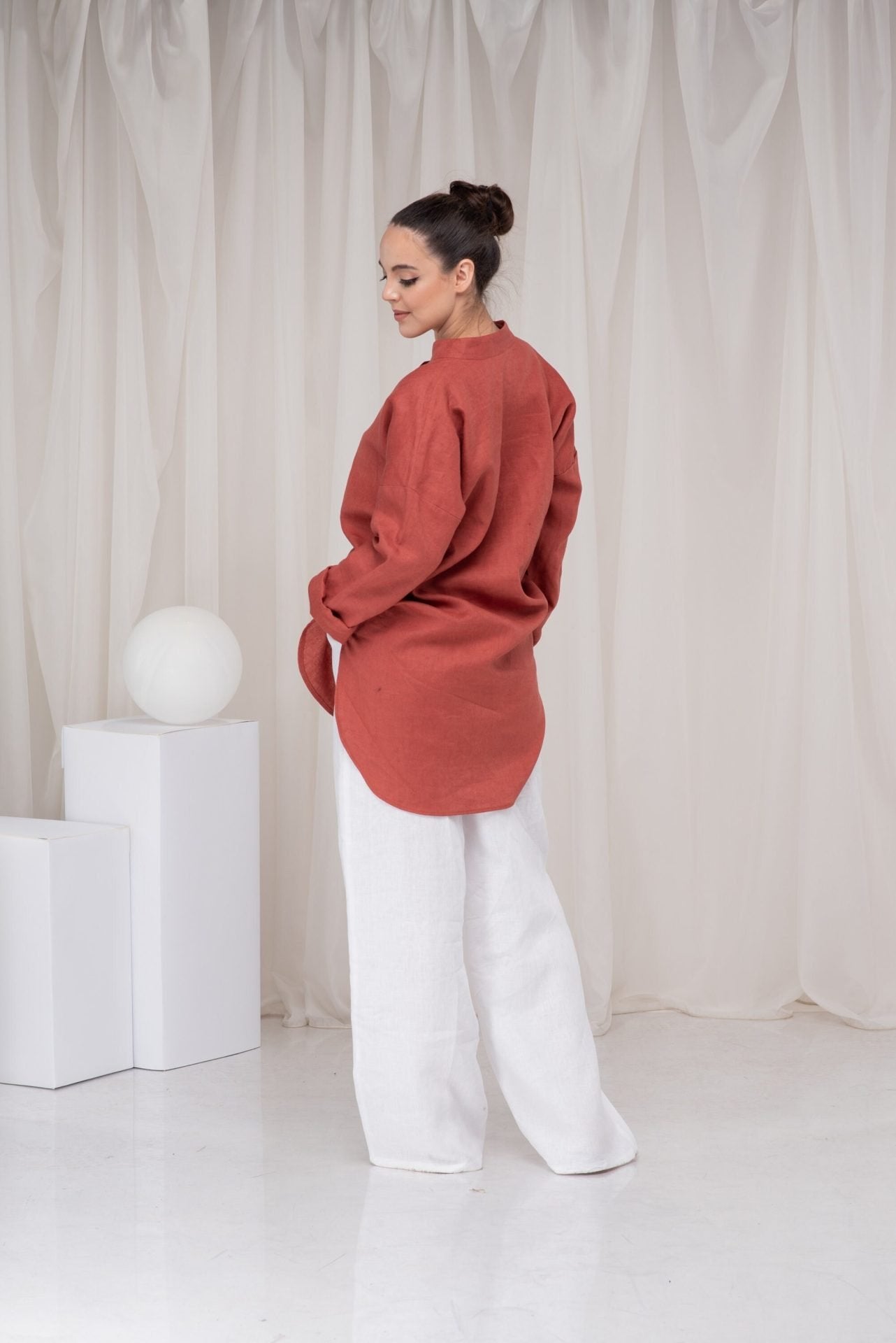 Linen Plus Size Loose Summer Burnt Orange Blouse