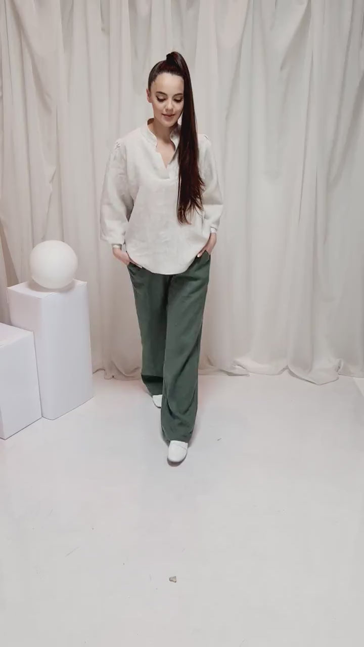 Linen Victorian Loose Blouse with Balloon Sleeves