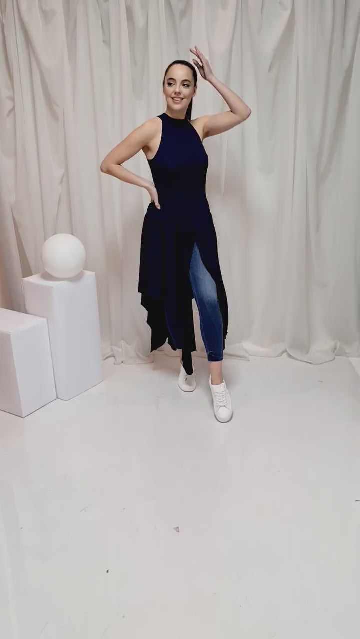 Long Blue Asymmetrical Summer Draped Tank Tunic