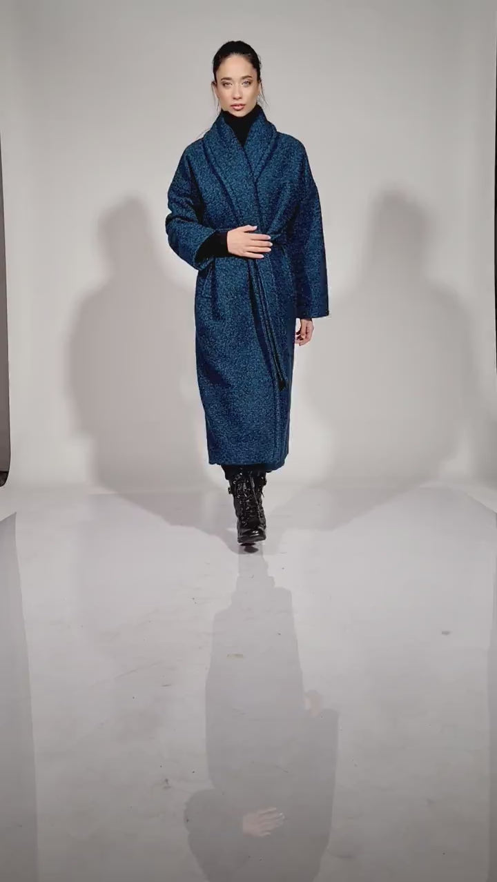 Long Wool Coat Winter Wrap Oversized Shawl Collar
