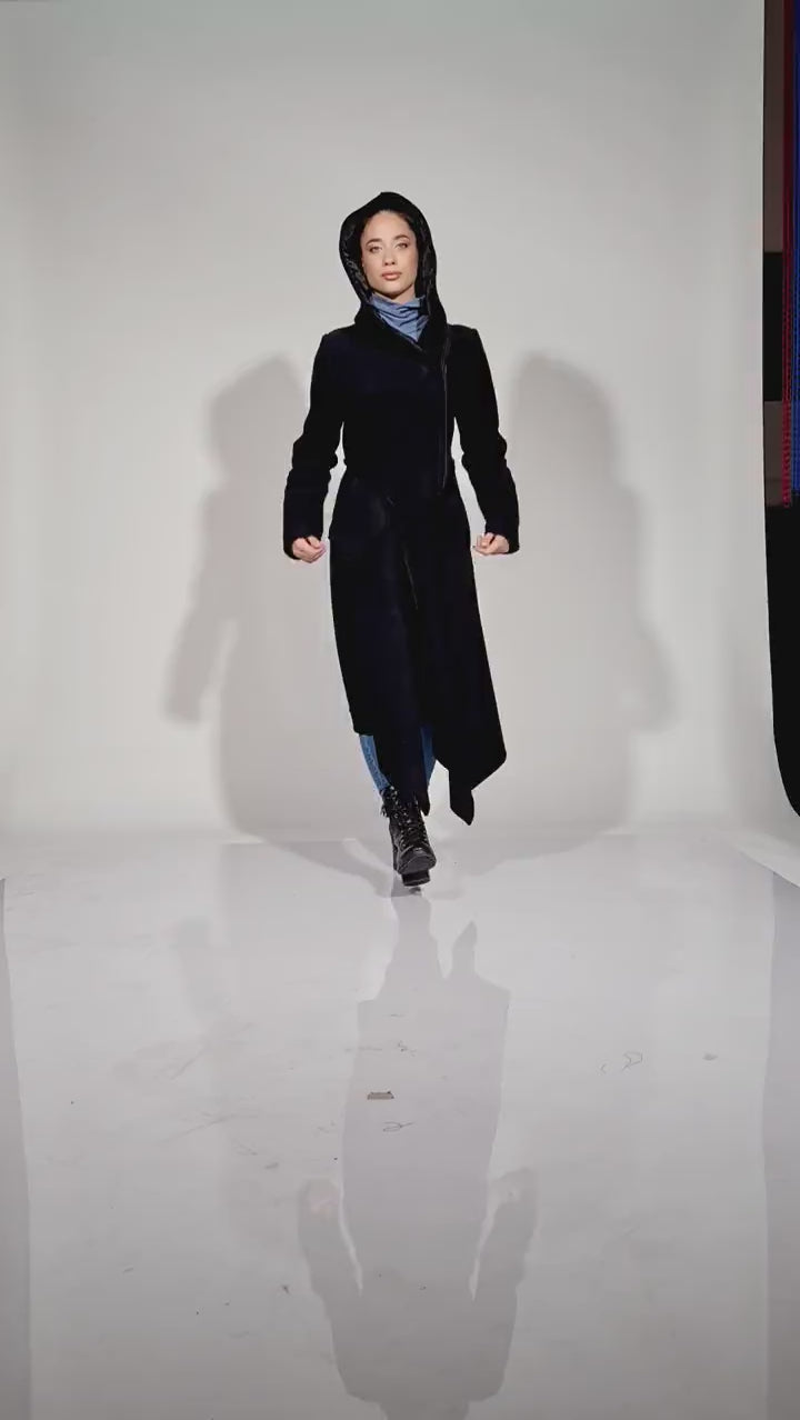 Long Wool Coat with Hood - Asymmetrical Zip Up Coat