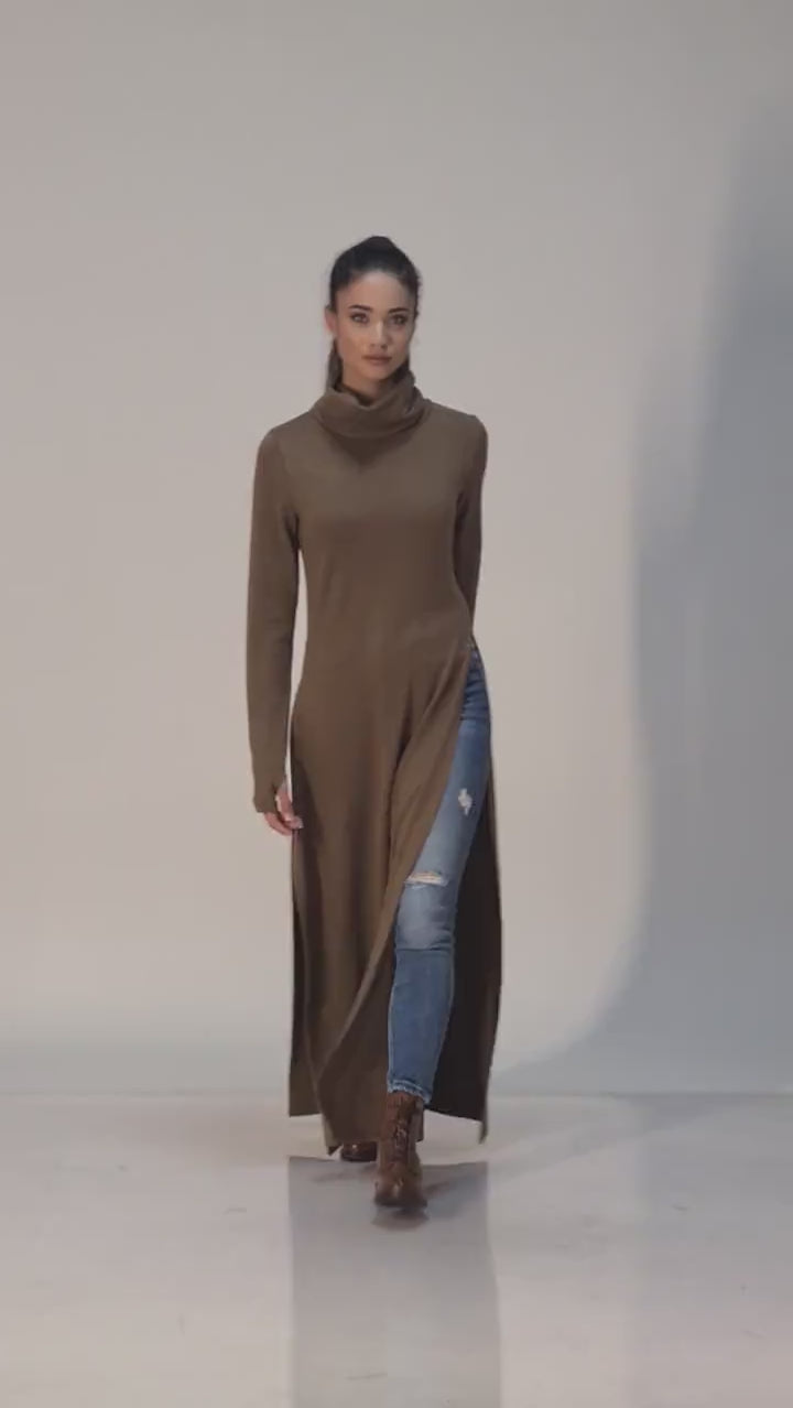 Maxi Long Turtleneck Knit Sweater Tunic Dress
