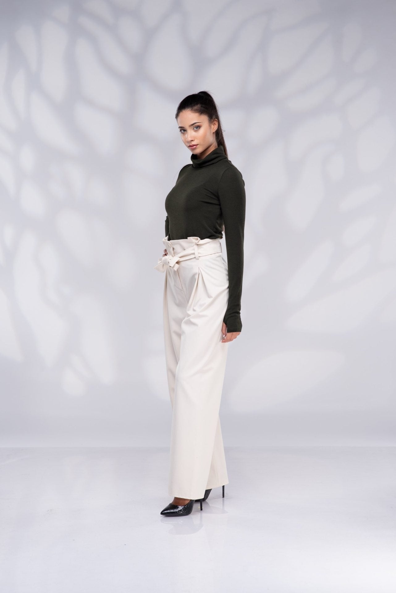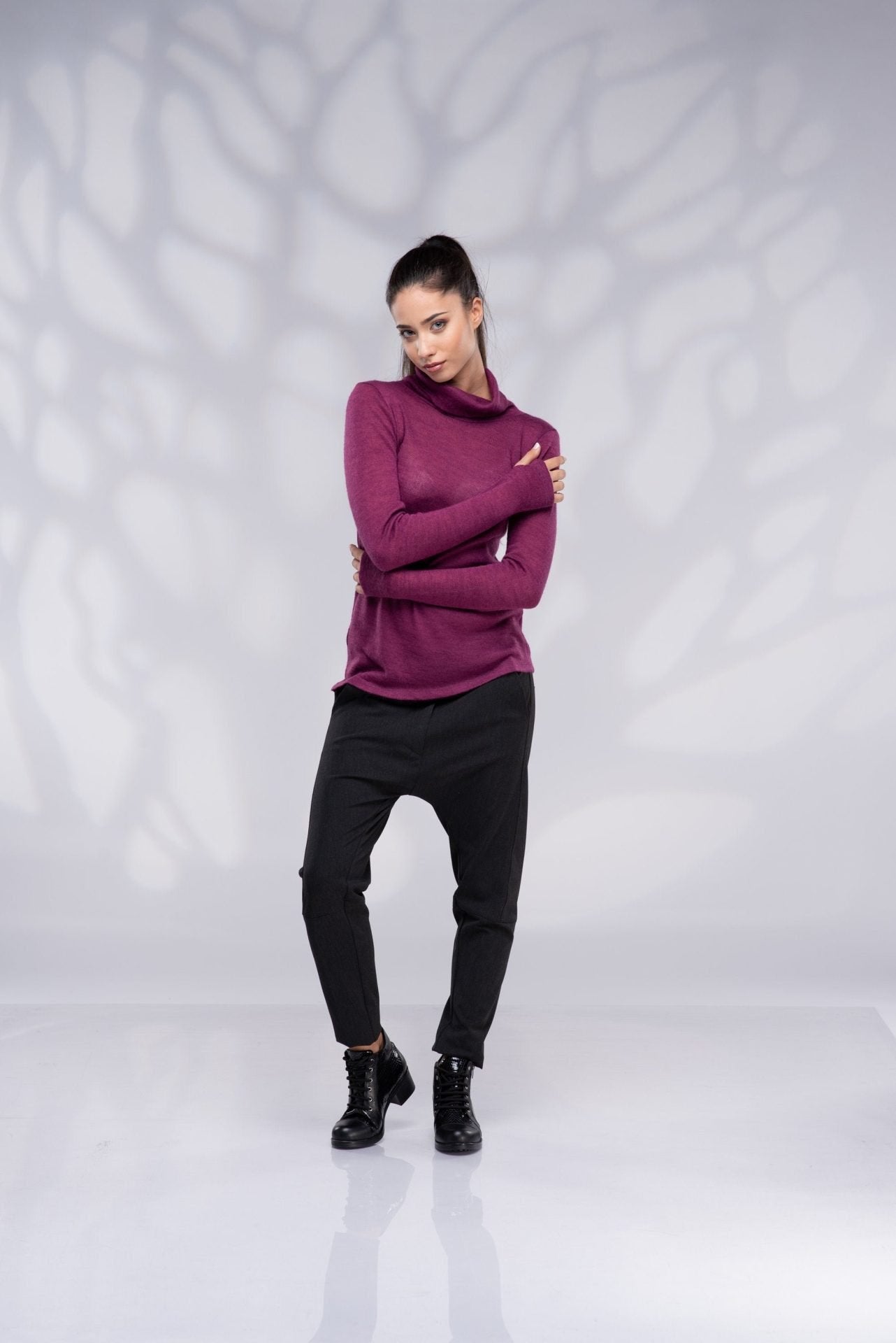 Pearl Pink Turtleneck Blouse with Long Sleeves
