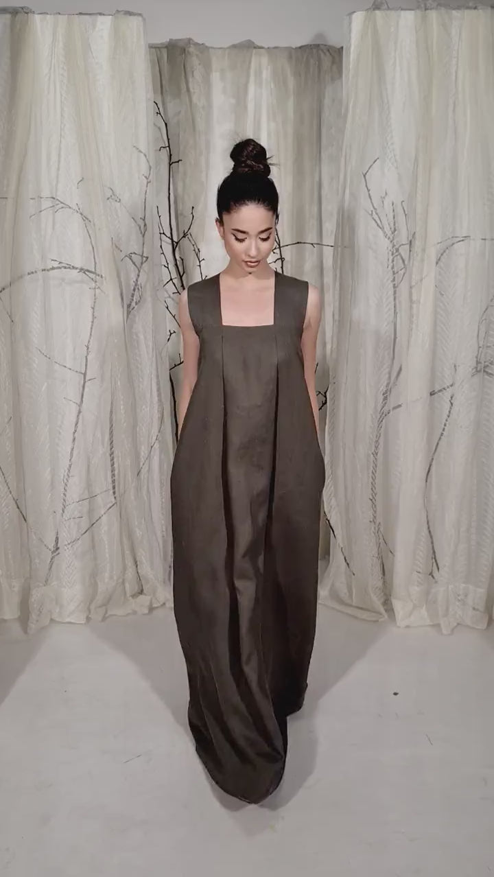 Linen Cross Back Maxi Dress with Square Neck