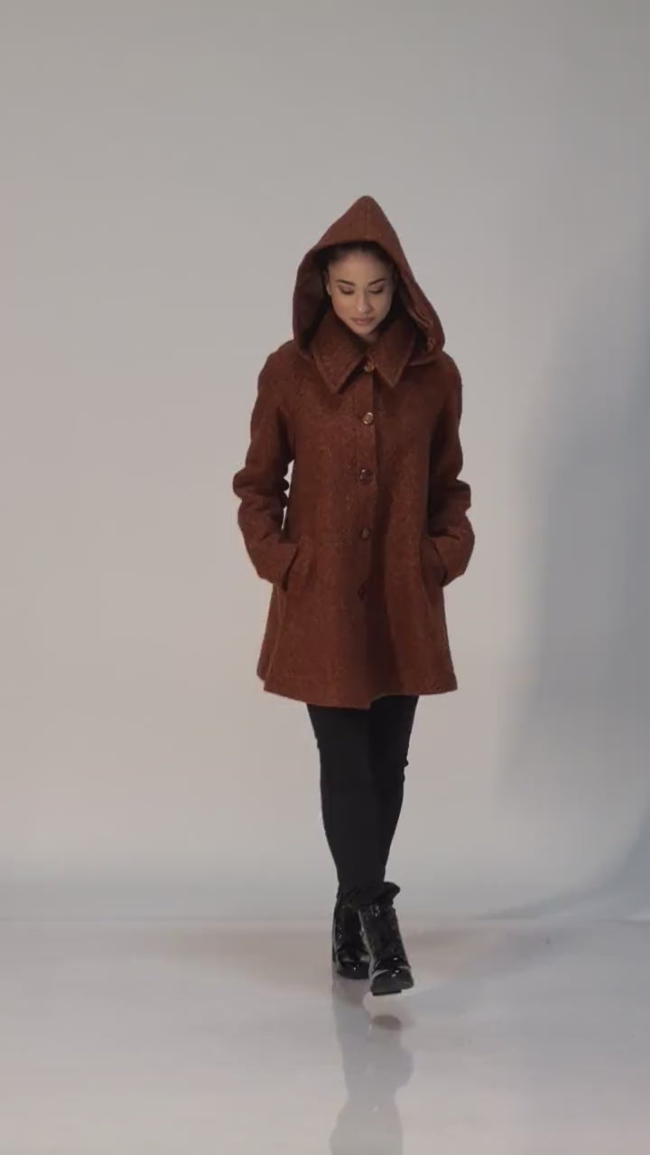 Short Wool Swing Coat Hooded Winter Warm Short with Lining